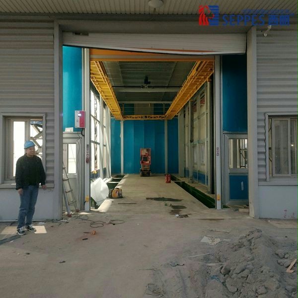 下圖為在汽車補漆室安裝的快速卷簾門現場圖片: